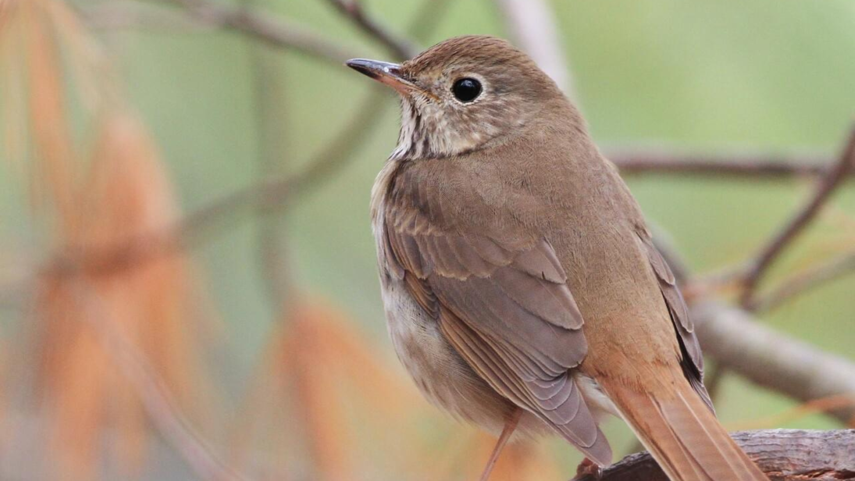 The reverie of my mid-winter sunbath is disturbed by a subtle “chuck, chuck” coming from the woods that border the trail. A Hermit Thrush calling! More often heard than seen, these birds seemingly melt into the landscape. You don’t see a Hermit Thrush; it lets you see it.